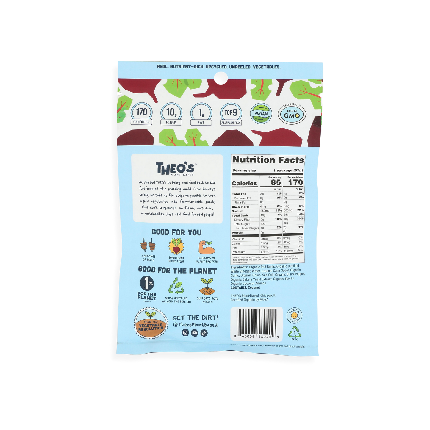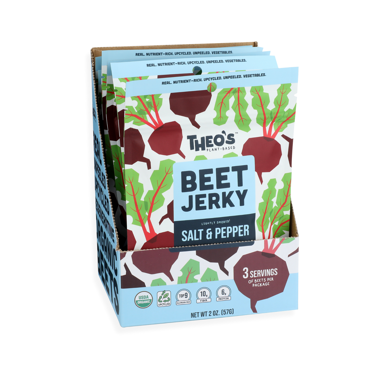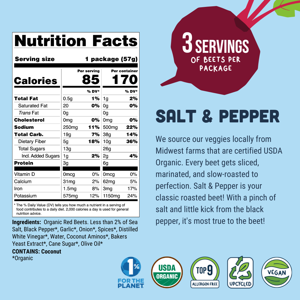 Beet Jerky is a new vegetable snack packed with 3 servings of beets per bag! First of its kind, Beet Jerky is USDA Organic, Gluten Free, and Upcycled with 170 calories or less per package. We use the entire beetroot including the stem, peel, and root of the beet, to increase nutrition and reduce food waste.