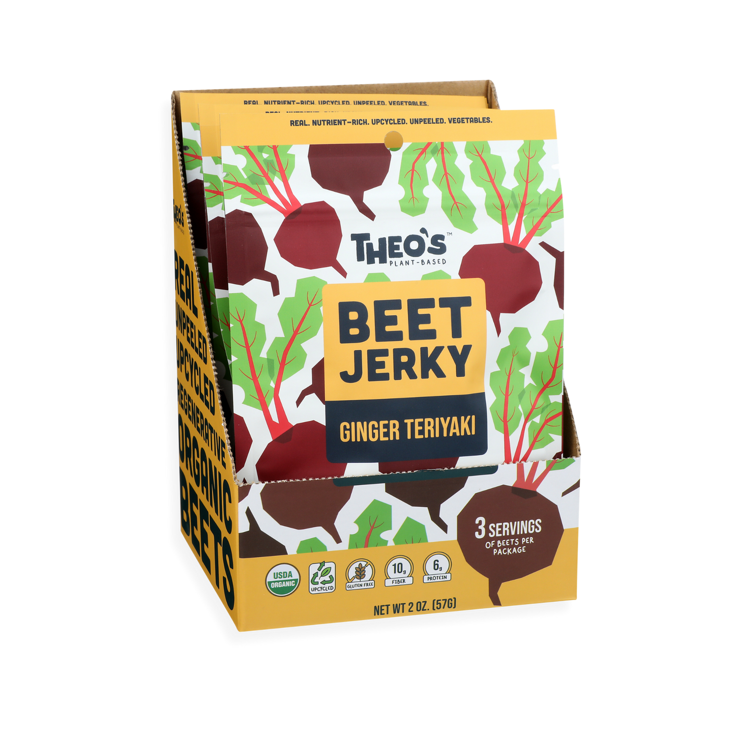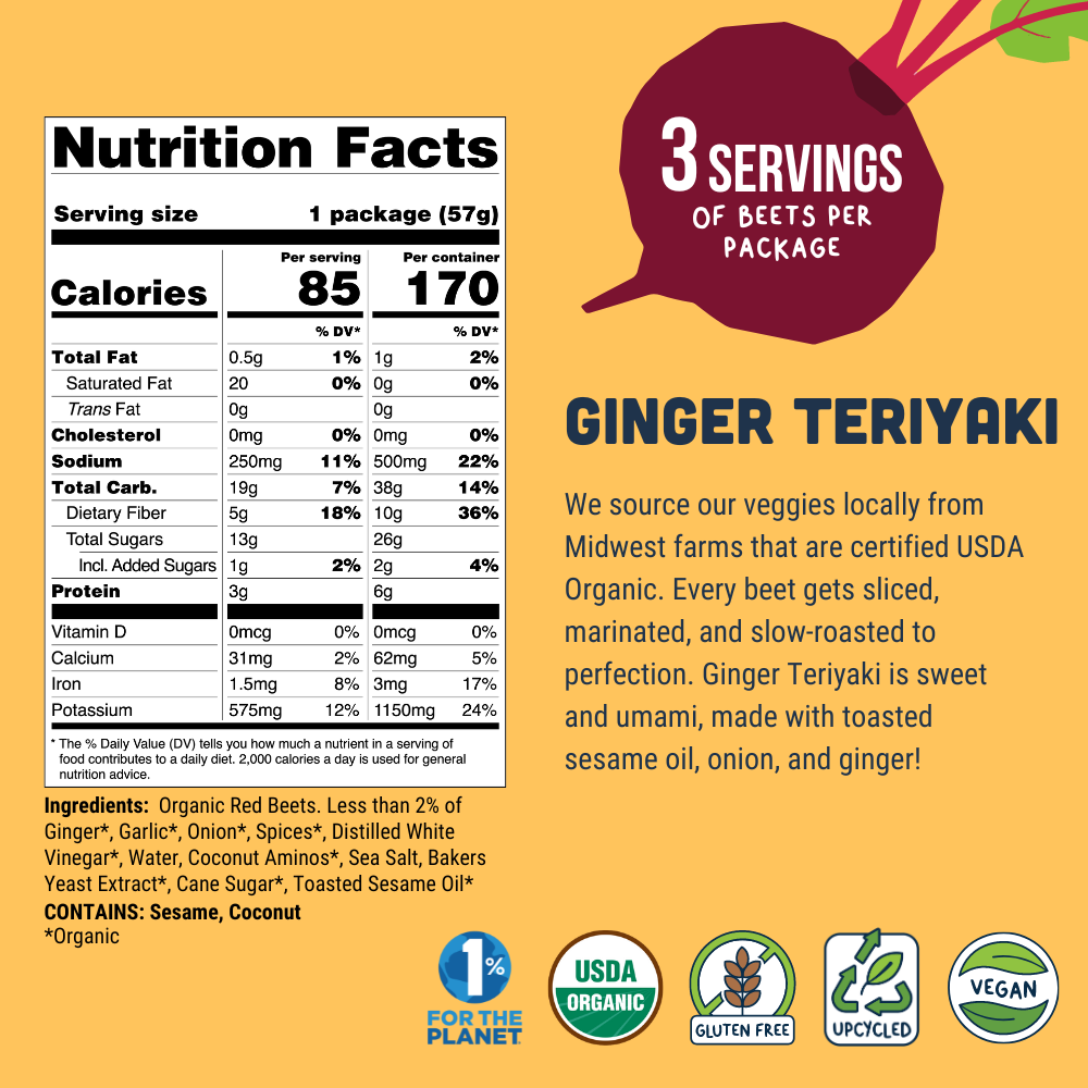 Beet Jerky is a new vegetable snack packed with 3 servings of beets per bag! First of its kind, Beet Jerky is USDA Organic, Gluten Free, and Upcycled with 170 calories or less per package. We use the entire beetroot including the stem, peel, and root of the beet, to increase nutrition and reduce food waste.